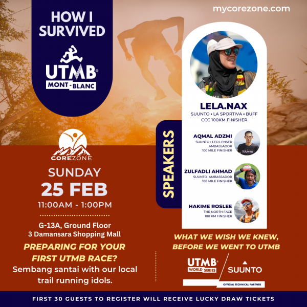 First 30 guests to register will receive Lucky Draw tickets for prizes sponsored by SUUNTO, BUFF and La Sportiva @ COREZONE 3 Damansara.